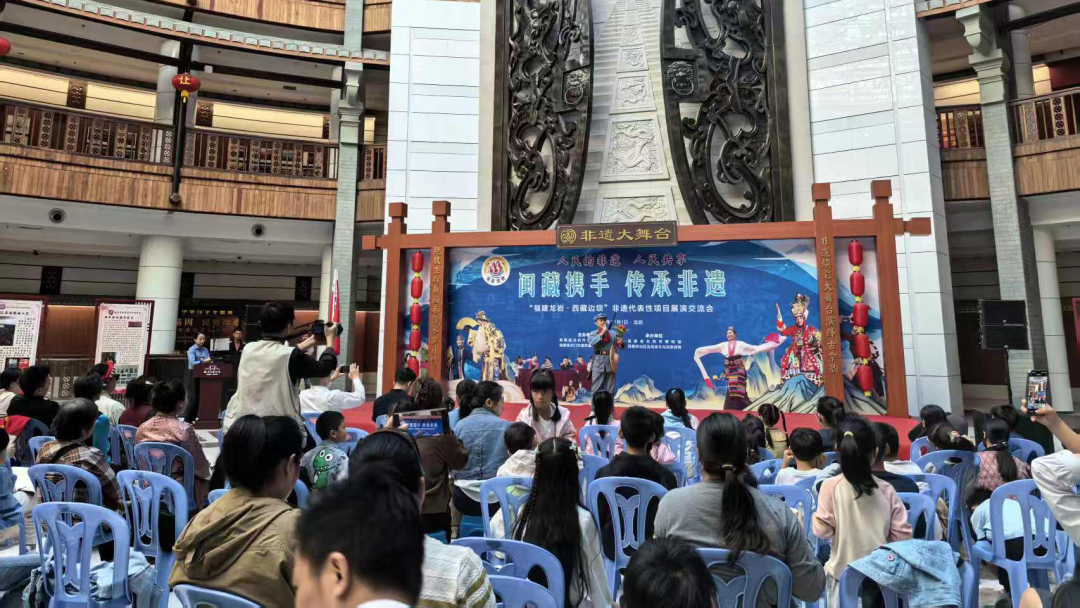 活动现场精彩纷呈,龙岩剪纸的精巧灵动、客家木偶戏的活灵活现,与边坝锅庄的热情奔放、格萨尔说唱的古朴厚重轮番登台,赢得现场观众阵阵掌声。