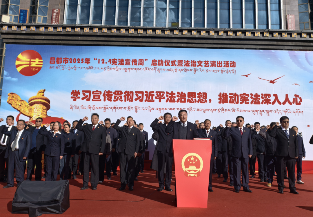 红色法治润三江,康巴大地正气扬!12月4日是第十二个国家宪法日。市委宣传部、市司法局、市普法办共同举办了以“学习宣传贯彻习近平法治思想,推动宪法深入人心”为主题的“宪法宣传周”活动,强化法治宣传教育,引导广大市民争做宪法拥护者、法律明白人。市委常委、宣传部部长、市委全面依法治市委员会守法普法协调小组组长欧珠达瓦出席并宣布2025年“宪法宣传周”系列活动启动。