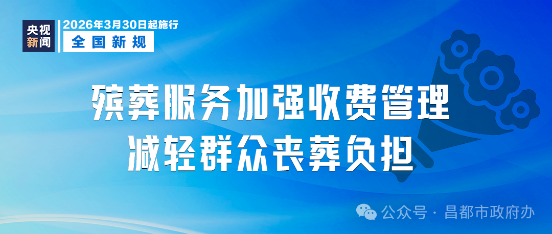 新修订的《殡葬管理条例》3月30日起施行。条例明确加强收费管理,禁止在清单以外设立项目收取费用;倡导使用绿色环保丧葬用品,文明、低碳、安全祭扫;鼓励农村红白理事会等组织发挥作用,引导移风易俗。