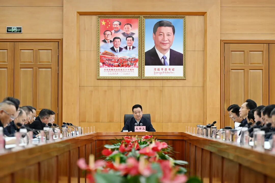 王君正强调,要弘扬理论联系实际的学风,紧密结合西藏实际持之以恒统筹推进“四件大事”落实,努力建设社会主义现代化新西藏。深入贯彻全国两会精神,贯彻落实习近平总书记关于西藏工作的重要指示和新时代党的治藏方略,持续全面深入学习贯彻习近平总书记2025年在西藏视察时的重要讲话精神,不断增强政治自觉思想自觉行动自觉,结合本地区、本部门、本行业实际情况,强化领导、压实责任、细化措施,不折不扣把习近平总书记关于西藏工作的重要指示落到实处。坚决维护社会大局持续稳定,坚持全面依法治藏,进一步加强民族团结进步教育,铸牢中华民族共同体意识、推进中华民族共同体建设,深化拓展“三个意识”教育,积极引导藏传佛教与社会主义社会相适应,不断打牢长治久安的基础。因地制宜推动高质量发展,大力培育发展新质生产力,发展壮大清洁能源、绿色矿业、文化旅游、高原特色农牧等产业,持续扩大有效投资,扎实推进重大项目建设,加快融入全国统一大市场,建设面向南亚开放的重要通道,确保经济发展当前有活力、未来有潜力。坚持改善民生、凝聚人心,把群众身边的小事当作各级党委、政府的大事来抓,深入实施“十大民生工程”,提升公共服务均等化水平,用心用情用力解决好各族群众急难愁盼问题,让发展成果更多更公平惠及全体人民。坚决贯彻落实习近平生态文明思想,严格落实生态环境法典和青藏高原生态保护法,加大国土绿化和生态保护修复力度,科学实施南北山绿化工程,着力推动绿色低碳发展,扎实筑牢国家生态安全屏障。持续加强边境地区建设,大力推进边境基础设施、“智慧边防”建设,因地制宜发展特色产业,不断拓宽边境群众增收渠道,努力建设繁荣稳固的祖国边疆。
