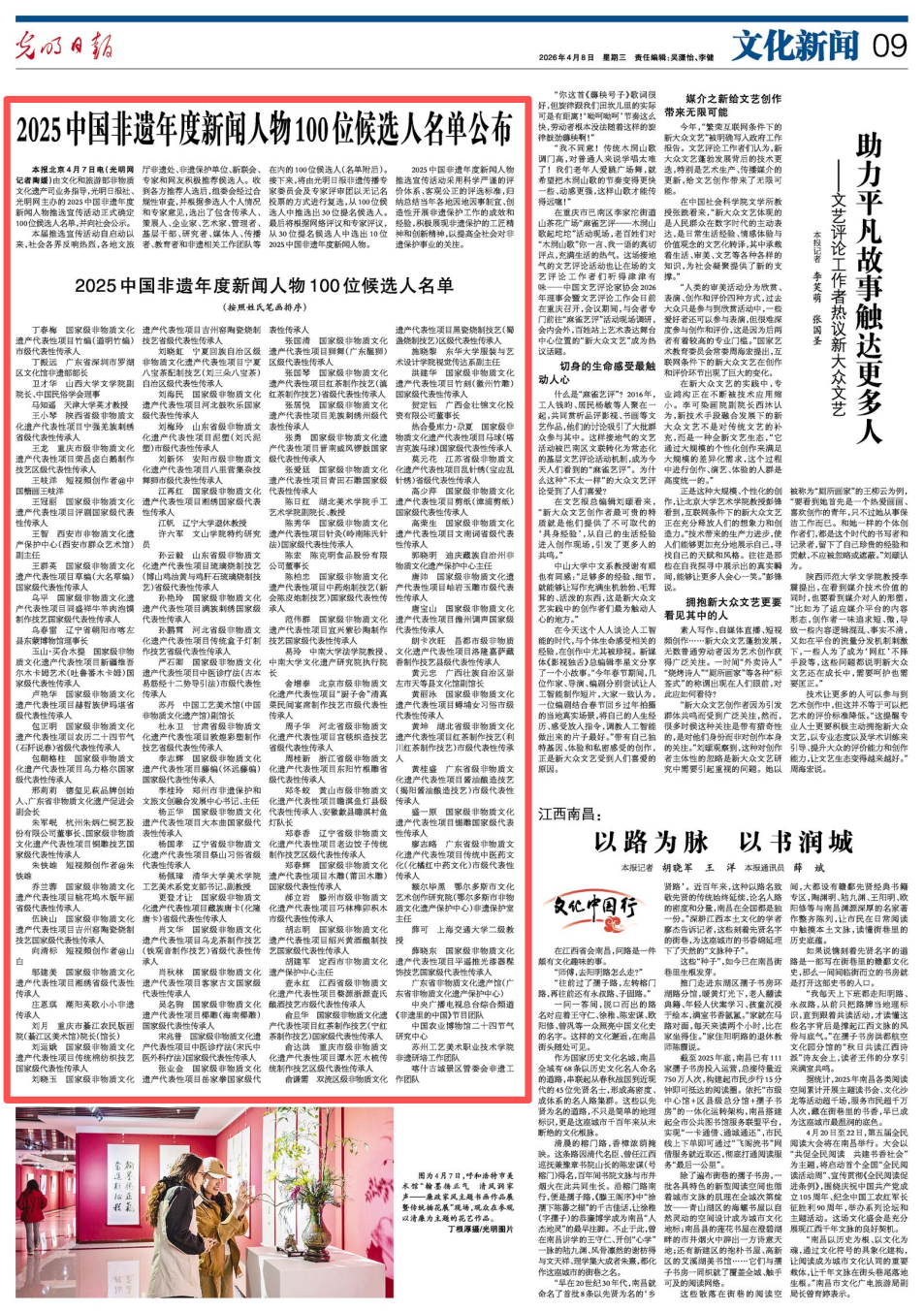 近日,由文化和旅游部非物质文化遗产司业务指导,光明日报社、光明网主办的2025中国非遗年度新闻人物推选宣传活动正式确定100位候选人名单。昌都市一人入选